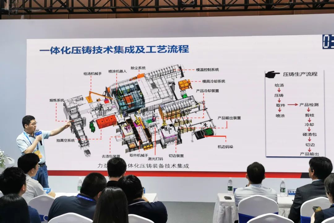 力劲集团技术中心张涛博士介绍了项目情况,就一体化压铸技术集成及工艺流程,技术升级要克服的难点及比亚迪汽车工业有限公司一体化技术示范等做了分享。